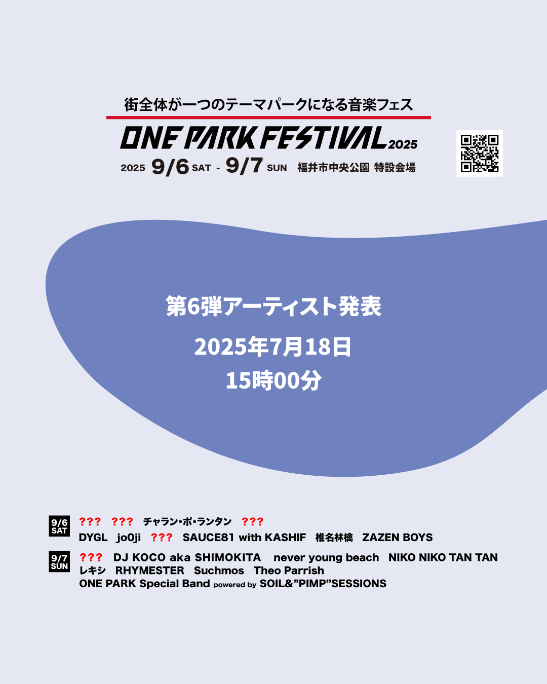 2025.07.17 2025年7月18日 15時00分 第6弾アーティスト発表 お待たせしました! 2025年7月18日 15時00分 第6弾アーティストを発表致します! HPやSNSを要チェック! ご期待ください!!