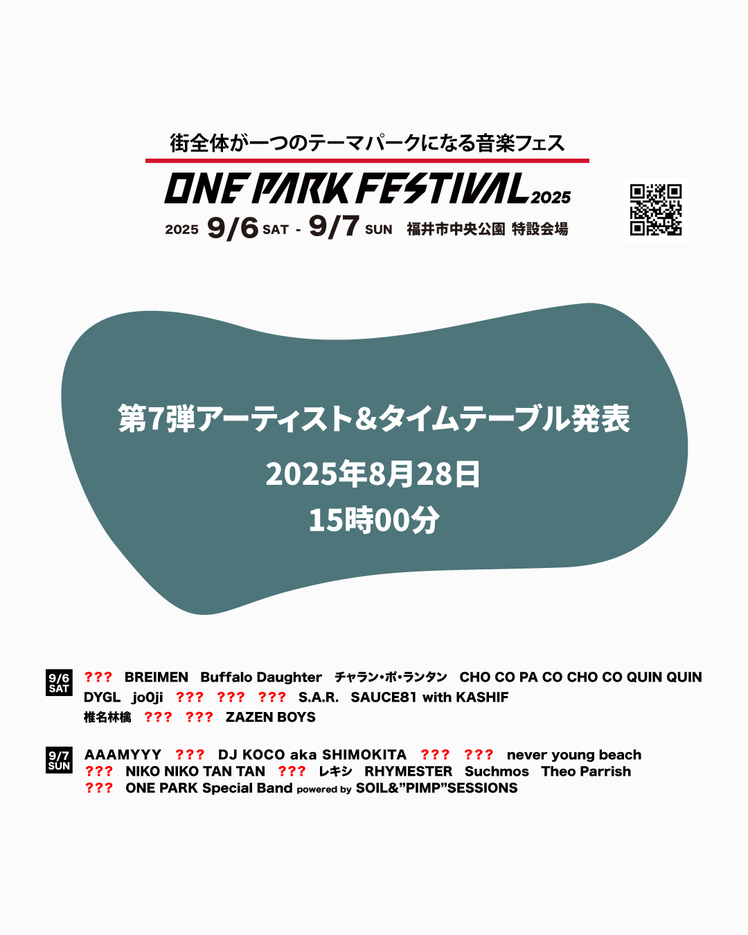 2025.08.26 2025年8月28日 15時00分 第7弾アーティスト&タイムテーブル発表 お待たせしました! 2025年8月28日 15時00分 第7弾アーティスト&タイムテーブルを発表致します! HPやSNSを要チェック! ご期待ください!