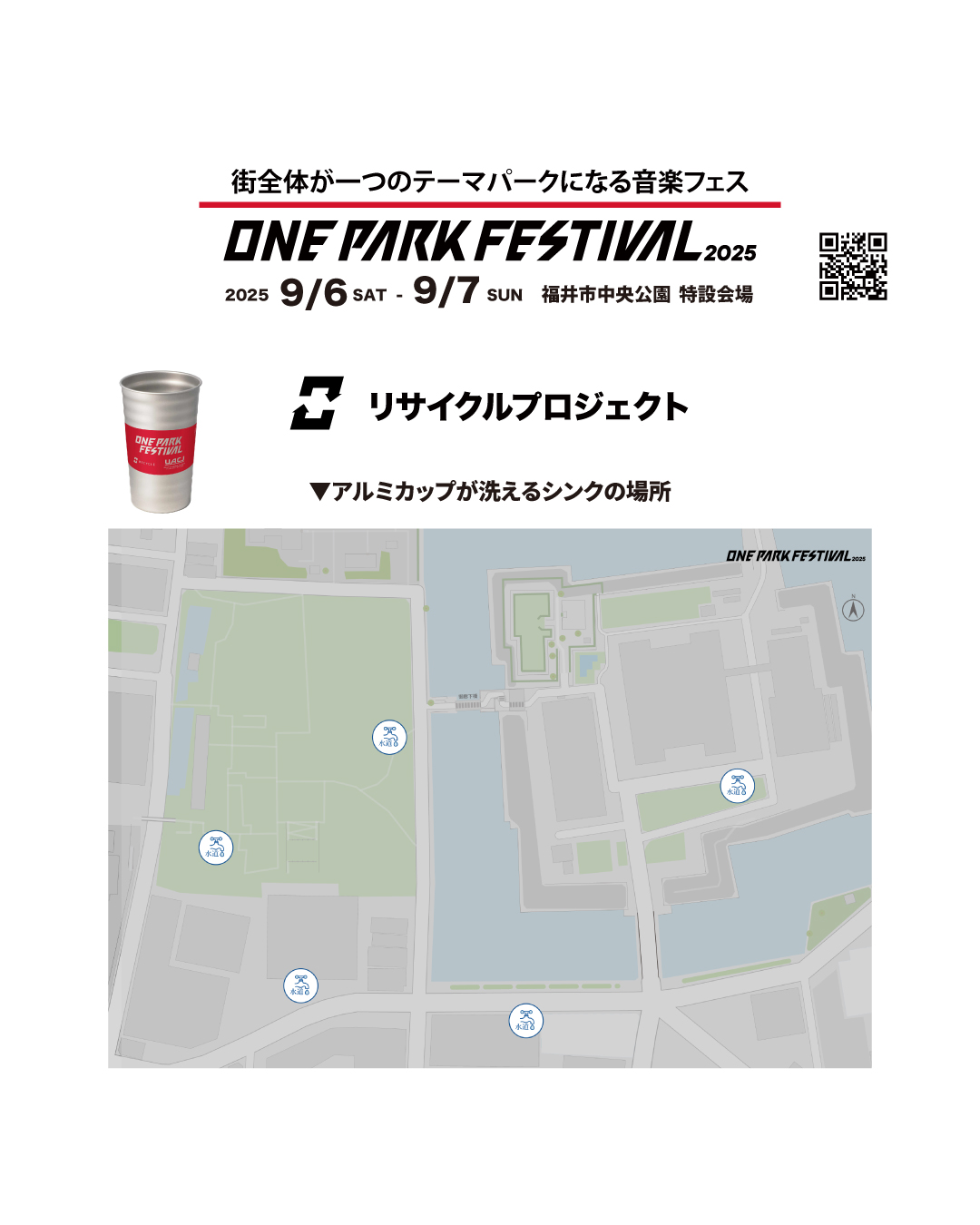 このアルミカップは、会場内に設置したシンクで洗っていただき、何度でも使用いただけます。