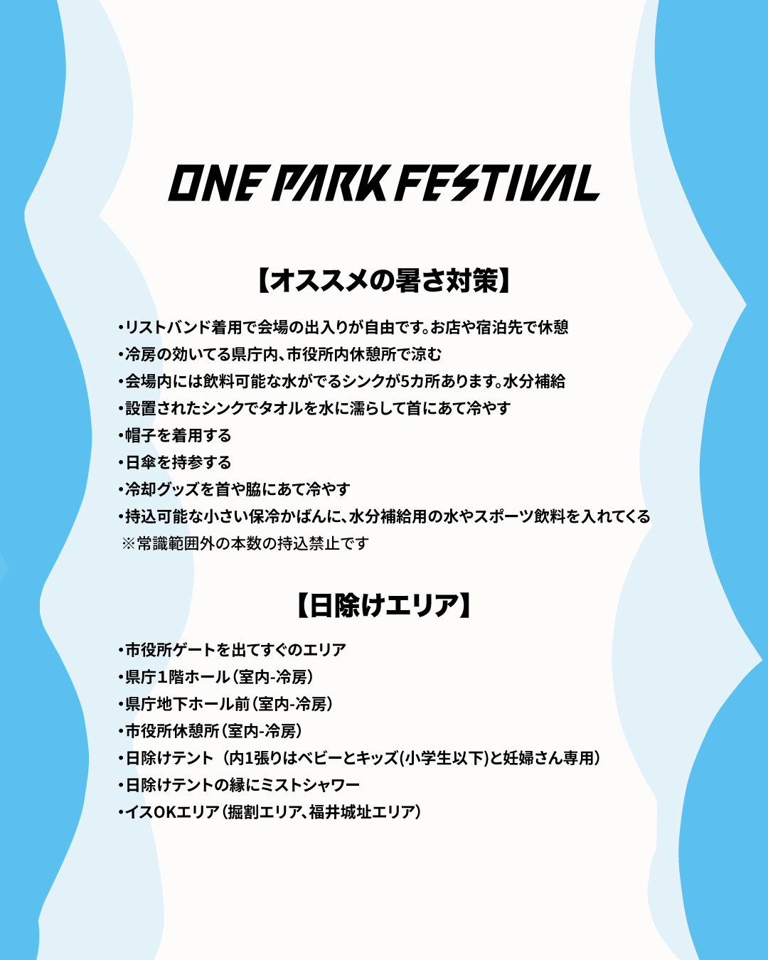 ・会場内には飲料可能な水がでるシンクが5カ所あります。水分補給